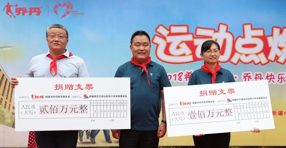“希望工程·谈球吧乔丹快乐体育基金”向福建省青少年发展基金会捐赠400万元用于在福建援建希望小学、捐助校园体育设施,开展体育活动等项目。